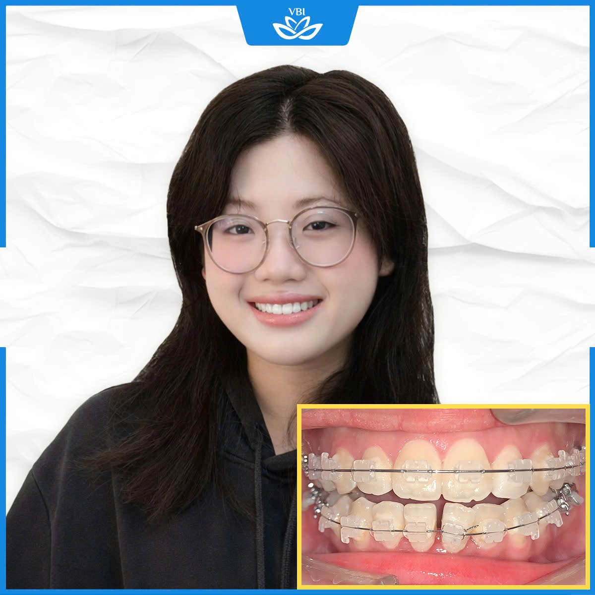 Khách hàng đeo mắc cài sứ và BS Quách Lý Thảo của Nha khoa Việt Bỉ